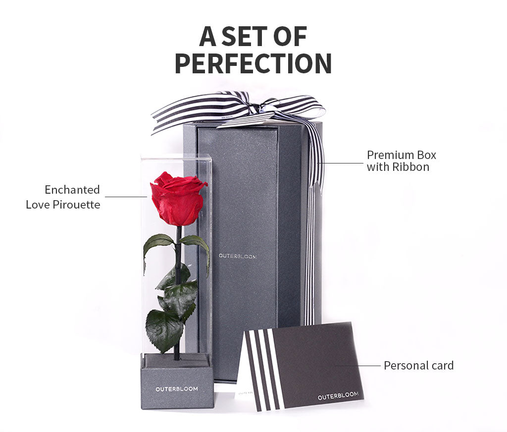 Ungkapkan perasaan Anda kepada seseorang yang spesial dengan “Enchanted Love Pirouette - Majestic Lilac” yang melambangkan keabadian cinta. Setangkai mawar pilihan yang dipetik oleh tangan para ahli bunga kami secara teliti, kemudian diawetkan melalui serangkaian proses alami sehingga dapat sampai di tangan Anda dalam kondisi sempurna, layaknya bunga segar yang mekar di taman. Dipajang dalam kotak akrilik transparan yang membuat Anda selalu dapat mengagumi keindahannya. Dikemas eksklusif dalam kotak premium dan dihias dengan pita satin yang menambah kesan mewah dan elegan. Jadikan koleksi Forever Flower ini saksi perjalanan cinta Anda bersama pasangan yang tak lekang oleh waktu.