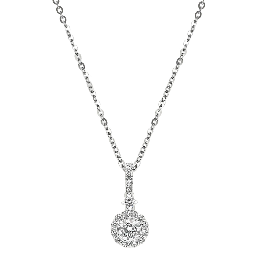 Liontin dengan 1 Round Diamond 0.37 Carat dan 18 Round Diamond 0.22 Carat Bertepi Berlekuk (Scalloped Edge) yang Artistik