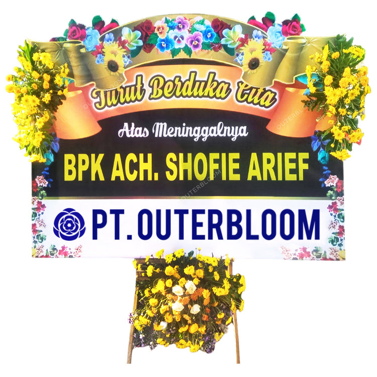 Papan Bunga ini cocok diberikan kepada kerabat atau rekan terdekat Anda yang sedang berkabung ataupun berduka cita. Tersedia dalam ukuran 200 cm x 130 cm. Hadir dengan varian rangkaian bunga fresh dan hiasan bunga suyok artificial (bunga plastik) berkualitas.