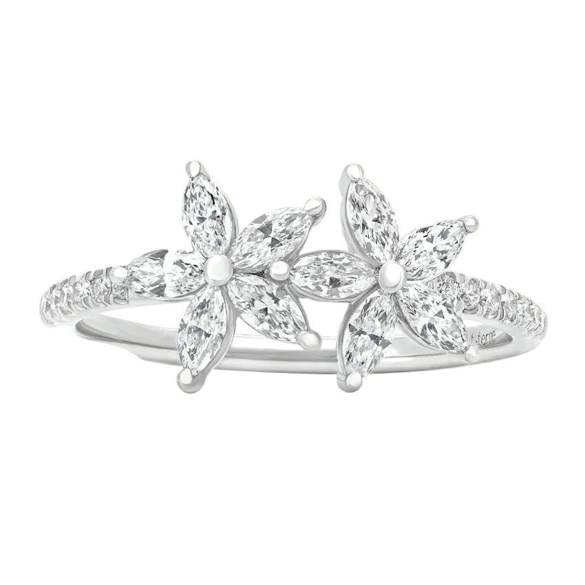 Duo Floral Ring adalah karya seni perhiasan yang menggabungkan keindahan rangkaian bunga ganda dalam satu cincin. Setiap motif bunga dihiasi Marquise Diamond dan Round Diamond yang tertata rapi untuk menciptakan kilauan yang elegan dan memikat. Material White Gold menyempurnakan tampilan dengan nuansa hangat namun tetap bersinar. Cincin ini bisa menjadi hadiah romantis untuk pasangan atau simbol keindahan yang Anda kenakan sendiri setiap hari.