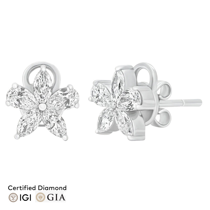 Fleur Earrings adalah perhiasan yang menyatukan keindahan bunga dan sentuhan kemewahan dalam balutan yang elegan. Kombinasi Marquise Diamond dan Pear Diamond menciptakan kilau yang hidup dan kontras dalam setiap lekuk desainnya. Cocok dikenakan sebagai sentuhan akhir yang memperindah gaya harian atau untuk melengkapi momen istimewa dengan kesan anggun dan memukau.