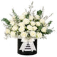 Ungkapkan kasih sayang Anda melalui White Elysian in Vase. Berisi mawar putih, baby breath, dan caspea dipadukan dengan filler dan dollar leaves yang dirangkai cantik dalam vas premium. Rangkaian bunga meja bernuansa warna putih ini melambangkan kemurnian cinta, sangat cocok untuk dikirimkan kepada orang yang Anda kasihi.
