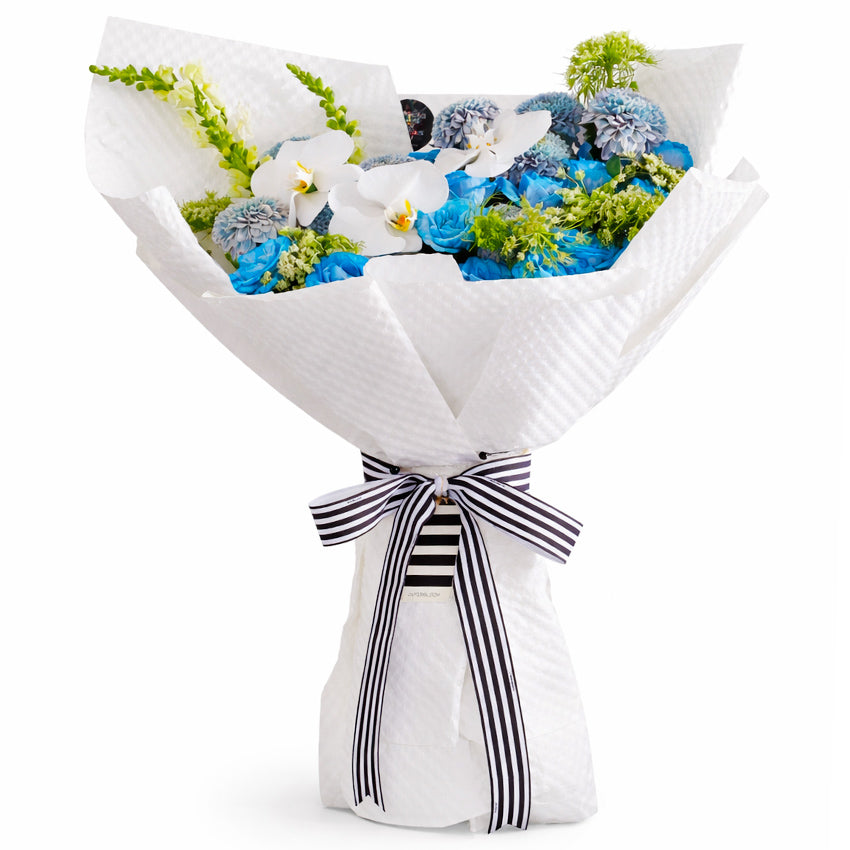 Sapphire Orchid Bouquet hadir sebagai pilihan istimewa untuk merayakan Hari Ibu dengan penuh makna. Perpaduan anggrek yang anggun dengan sentuhan snapdragon, rose, gompie, dan bunga majus menciptakan tampilan buket yang menawan dan berkelas. Dirangkai rapi dalam balutan wrapping paper putih yang elegan, buket ini semakin memikat dengan tambahan pita cantik dan hang tag Outerbloom. Cocok untuk menyampaikan rasa cinta, penghargaan, dan kasih sayang kepada ibu tercinta di momen spesialnya.