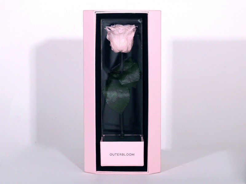| Ukuran | Rose: Tinggi 5.5 cm, Diameter 6.5 cm Acrylic Display: 8 x 8 x 30 cm Rotating Box: 15.5 x 13 x 33 cm |