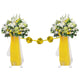 Meriahkan perayaan grand opening dengan Golden Times. Karangan bunga segar bernuansa warna putih dan kuning yang mengungkapkan ucapan selamat dan sukses bagi orang terkasih. Dirangkai indah dalam standing vase dan dihias dengan kain tule. Dilengkapi dengan pita peresmian acara yang menghubungkan kedua standing flower. Termasuk gunting untuk memotong pita dan nampan untuk membawanya. Tersedia dalam ukuran tinggi 150 cm yang dapat dipajang di dalam dan luar ruangan.