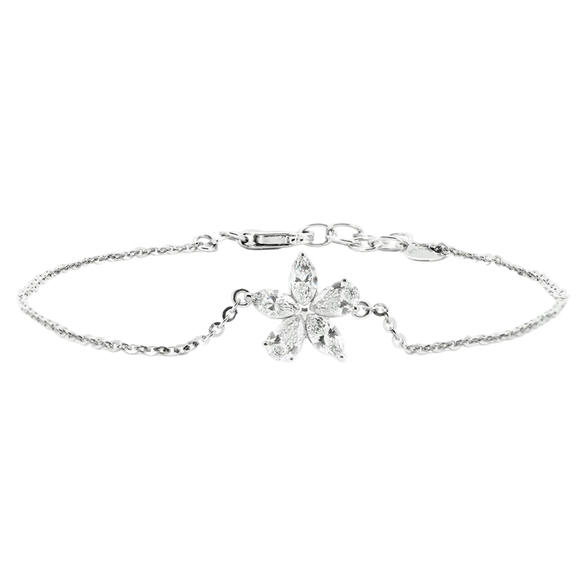 Fleur Diamond Bracelet adalah gelang menawan yang memadukan bentuk bunga asimetris dengan potongan berlian pear dan marquise, menciptakan visual yang unik dan anggun. Setiap berlian diposisikan untuk menangkap cahaya dalam gerakan tangan, menghasilkan kilau yang memikat dari berbagai sudut. Dengan desain feminin, gelang ini pas untuk mempercantik gaya kasual sehari-hari ataupun dipakai saat acara spesial. Gelang ini hadir sebagai simbol keanggunan modern yang siap menemani hari-harimu.