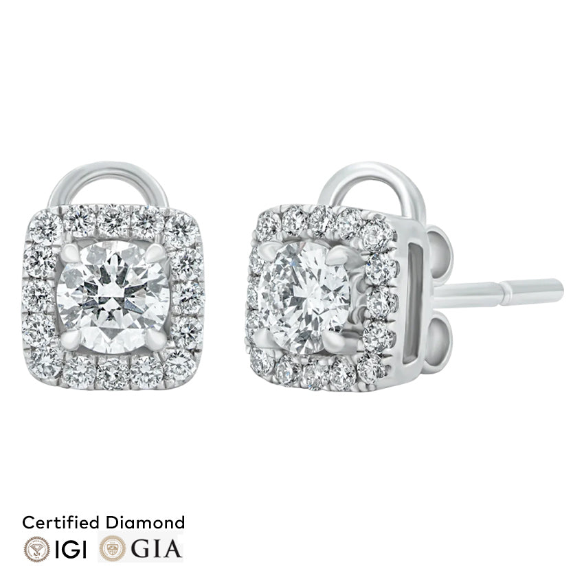Sol et Terre Round Diamond Earrings with Squared Halo